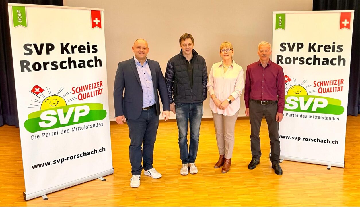 Die Rorschacher SVP Kantonsräte: Sandro Wasserfallen, Martin Hochreutener, Sabina Revoli und Heinz Herzog (neu, EDU) – von links nach rechts.